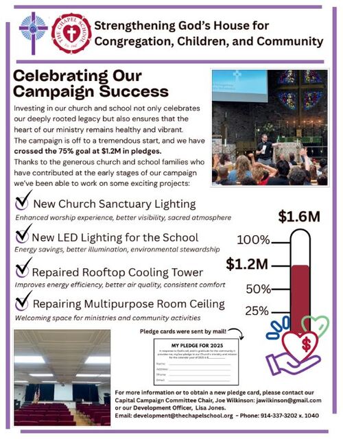 Our campaign crossed the 75% goal at $1.2M in pledges. You can pledge or make a one-time contribution by scanning this QR Code or clicking HERE. If you have any questions, please contact Lisa Jones at x. 1040